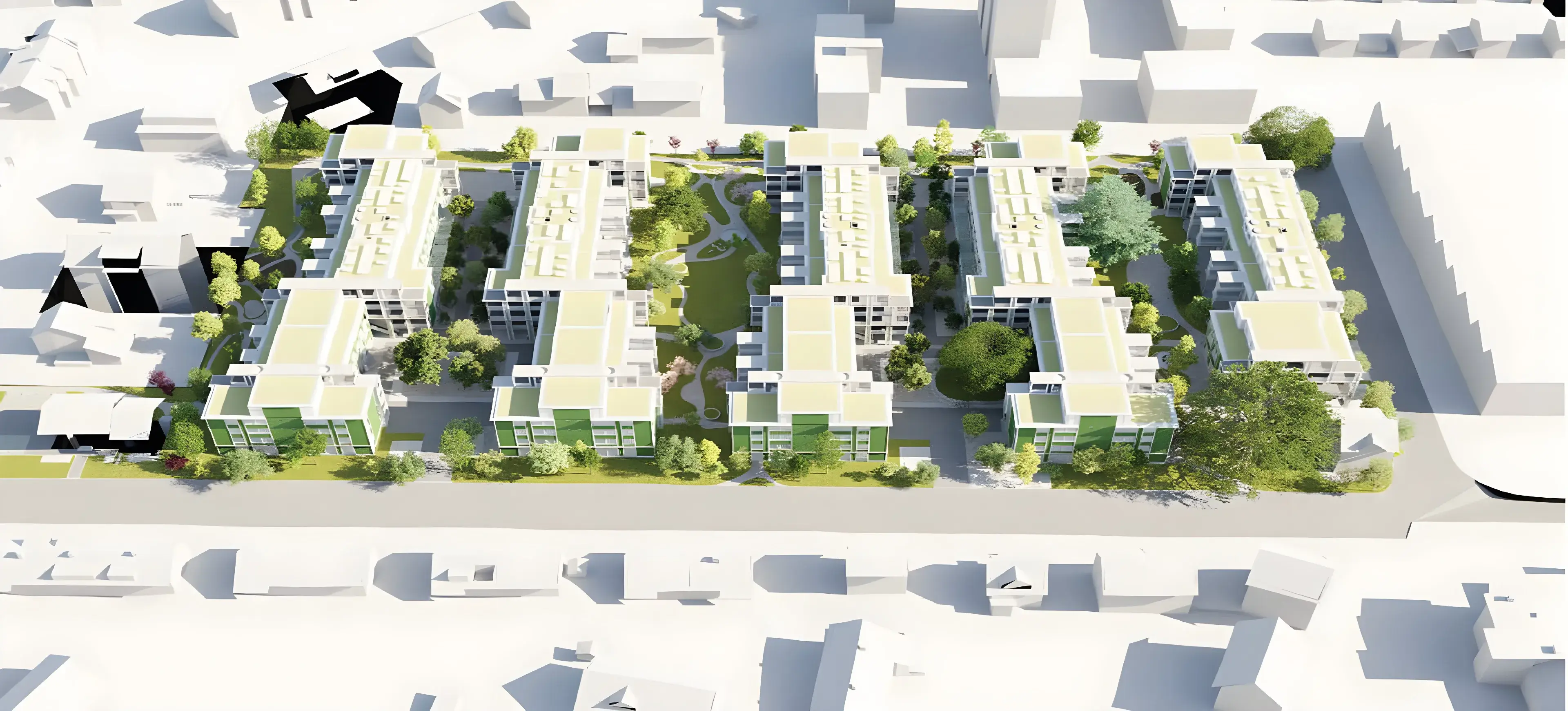 Die 2. Etappe, bestehend aus zwei weiteren Zeilen, wird bis Herbst/Winter 2029 im Westen des Areals realisiert.