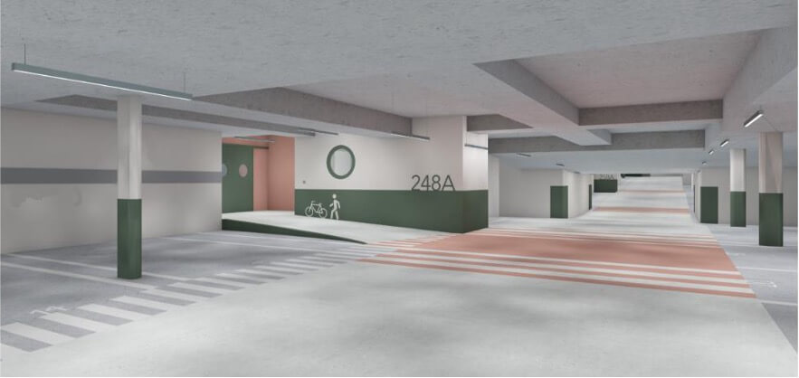 Im Untergeschoss sind 91 Autoparkplätze und 14 Töffparkplätze zu vermieten.
